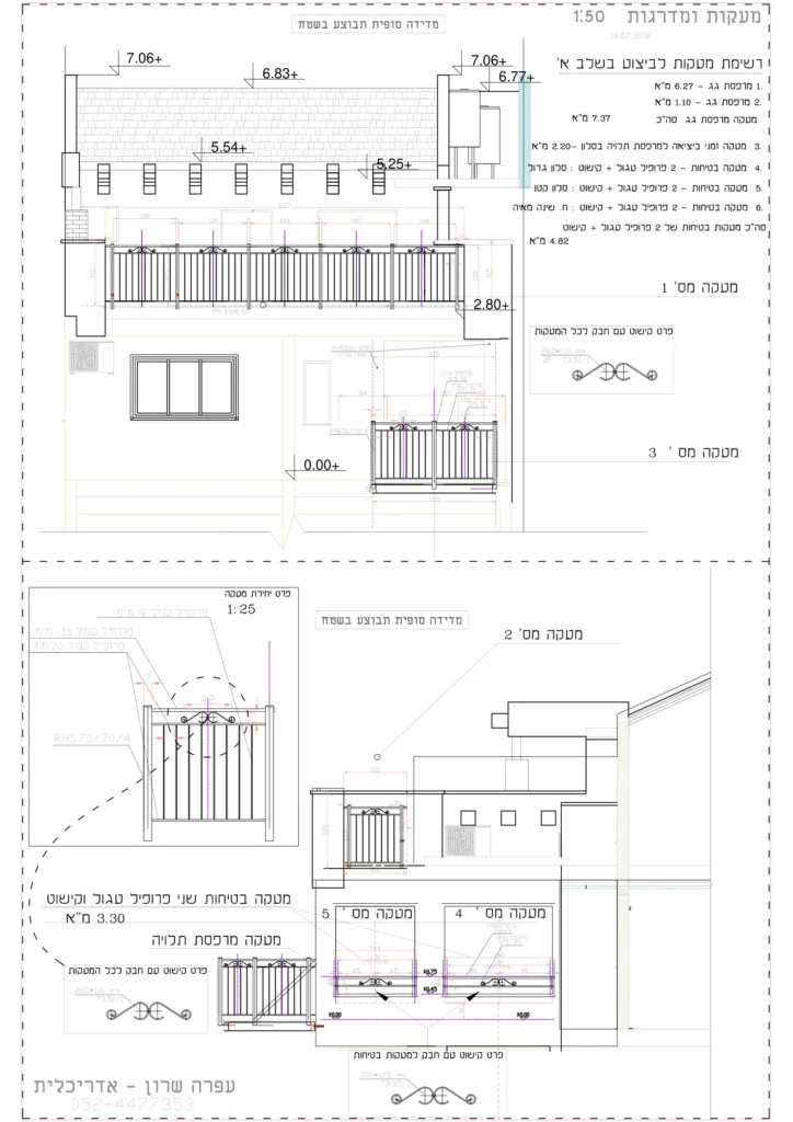 שיפוץ קומה קיימת ותוספת קומה חדשה בניית קומה חדשה מבט על החלל המרכזי - לאחר השיפוץ מרפסת גג פינת ישיבה במרפסת גג מרפסת דק קטנה לפני השיפוץ אחרי השיפוץ עם ריהוט פרטים - מעקות ומרפסות מדרגות מעץ ופלדה תכנית גימור